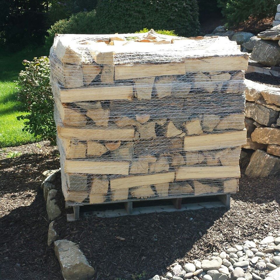 A seasoned 16" face cord of firewood is neatly stacked and delivered to your home with a narrow 48" wide wheel loader that oftentimes can get into your backyard over a dry lawn without any major disruption.